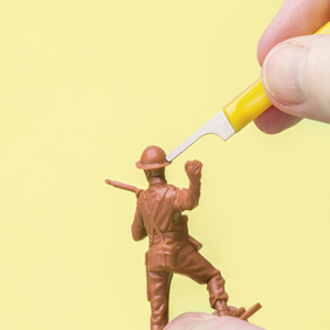 Simply draw the steel edge along the mould line or against the sprue to remove excess material, leaving a smooth finish.