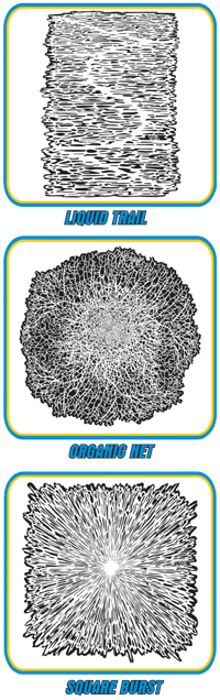 The Artool Texture FX2 Freehand Airbrush Templates, designed by Gerald Mendez are a compilation of natural and organic effects and are designed to create unlimited textural possibilities. This set of 3 templates includes: Liquid Trail, Organic Net and Square Burst.